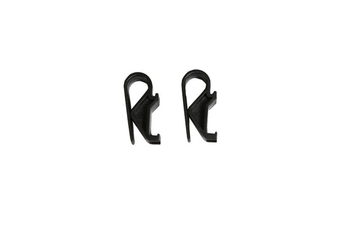 The two black hooks can be used as replacement hooks for Basil panniers and attached to existing Hook-On systems. The hooks can be adjusted in multiple positions on the system, making them suitable for many carriers.