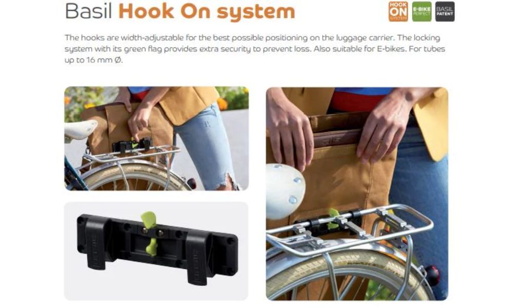 • The Basil Navigator Waterproof features a roll-top closure with an additional adjustable hook.