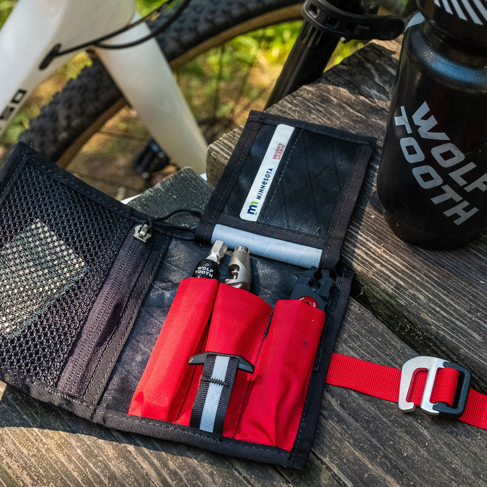 Revelate Designs and Wolf Tooth Components have partnered to release the ToolCash. Designed around compact trail tools like Wolf Tooth’s Pack Pliers and EnCase System Multi-tools, this combination riding wallet + tool wrap utilizes a smart tri-fold design to simplify repairs and resupplies.