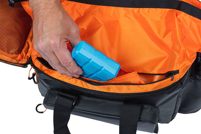 • Two compartments for cooling packs (sold separately).