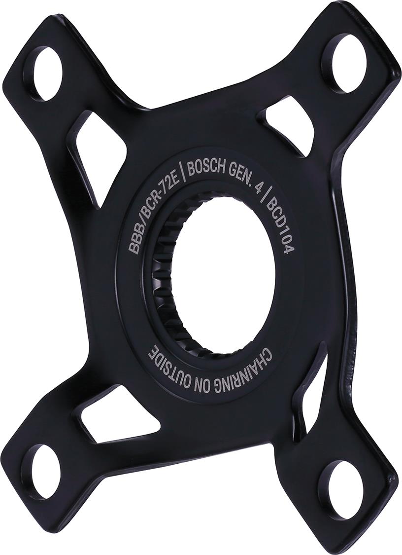Upgrade your e-bike with the E-bikeMount chainring spider. Tailored for Bosch gen. 3, it pairs with any 4-arm chainrings (BCD 104mm) and boasts a 52mm chainline, enhancing efficiency. Crafted from robust steel, it guarantees long-lasting performance.