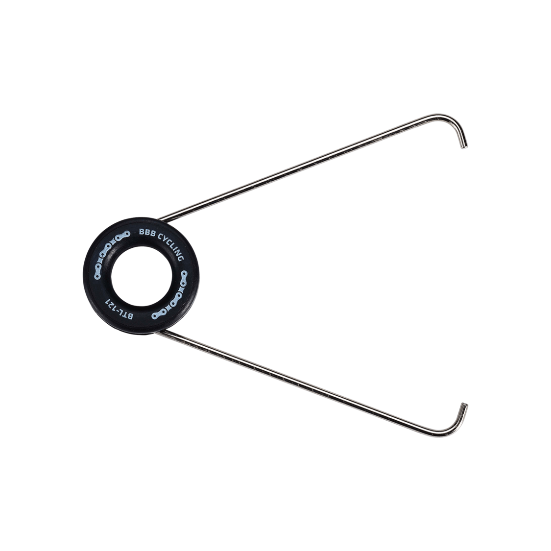 Keep the pressure off your chain while you are working on it. The HandyHook is definitely a handy hook. Hook it onto your chain on one side, and hook it onto the other side of where you are working. The HandyHook gives you a free hand to do the job. Easy, but so clever!
