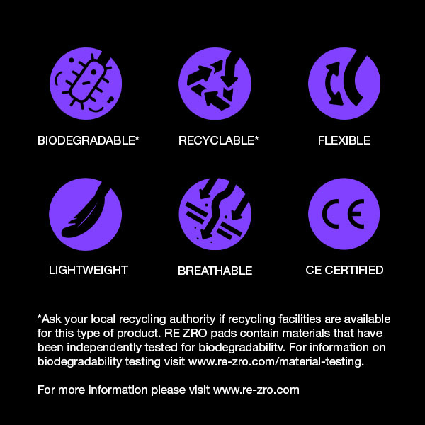 *RE ZRO pads contain materials that have been independently tested for biodegradability. For information on biodegradability testing visit: www.re-zro.com/material-testing. For more information, please visit www.re-zro.com.