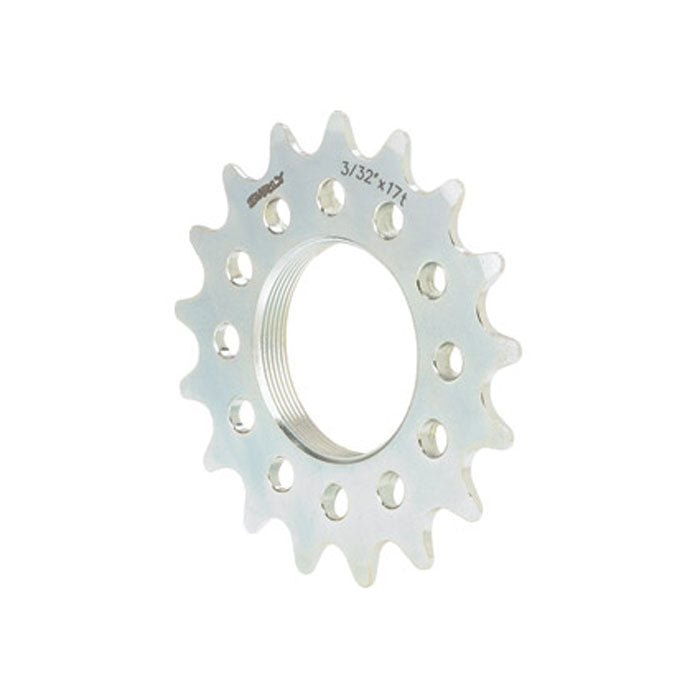 Our track cogs are designed to spin onto standard ISO-threaded (1.375" x 24tpi) hubs, so they will work with most English, Italian and Japanese hubs, including the Surly New track hubs. The thread base is 7.4mm wide for maximum thread engagement while maintaining enough room for a track lockring to thread on. Like our cassette-splined cogs, these are made from machined, heat-treated and chrome plated SCM415 CroMoly steel, so they are tough and long lasting. Track cogs are available in either 3/32" or 1/8" tooth thicknesses and in every size from 13-22t.