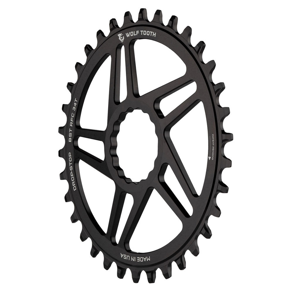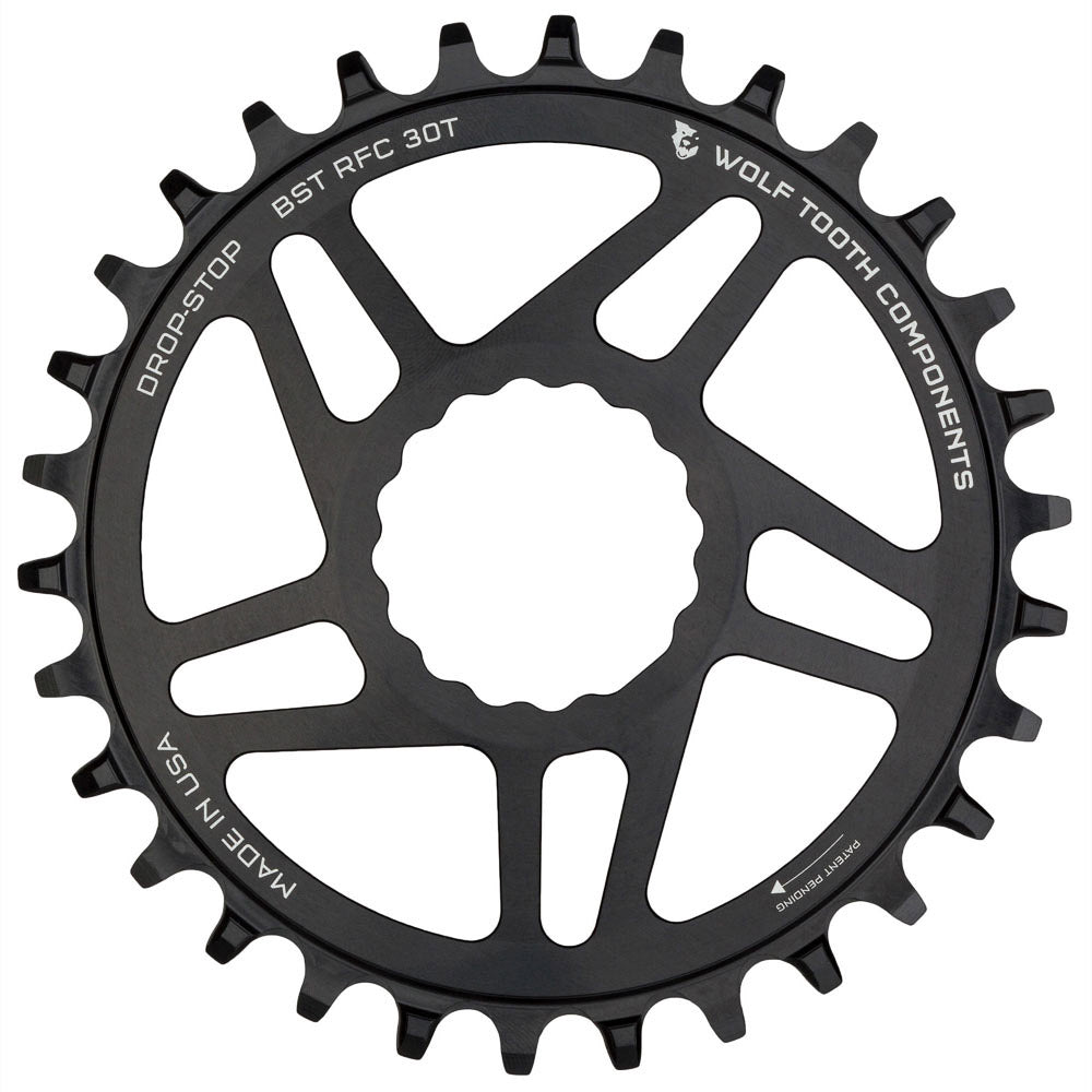 Wolf Tooth’s patented Drop-Stop® wide/narrow tooth profile delivers ultimate chain retention and mud shedding ability.