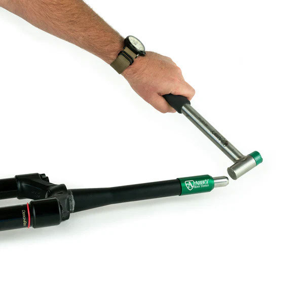 Sometimes simple tools are the best ones to make, they aren't complicated but small tweaks to the smallest of details can stack up to big improvements in function. The Star Nut Setter is one of those tools. A simple task to install the star nut into a metal fork steer tube so you can preload your threadless headset. The outer guide slips over the steer tube and make sure that the driver stays straight while you hammer the nut into the steer. The driver has a hard stop to give you a perfect install depth as well. We took the extra clearance out of the two pieces of this tool to refine this design to something worthy of Abbey Green.