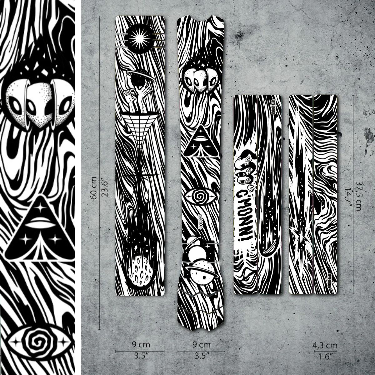 Glimpse boldly behind the flimsy curtain of Reality at what lies beyond. Will the Inner Workings reveal themselves through the Kaos? Or will the swirling madness consume you? There is eveything to gain, but just as much at stake. Stick this on your bike and roll the dice.