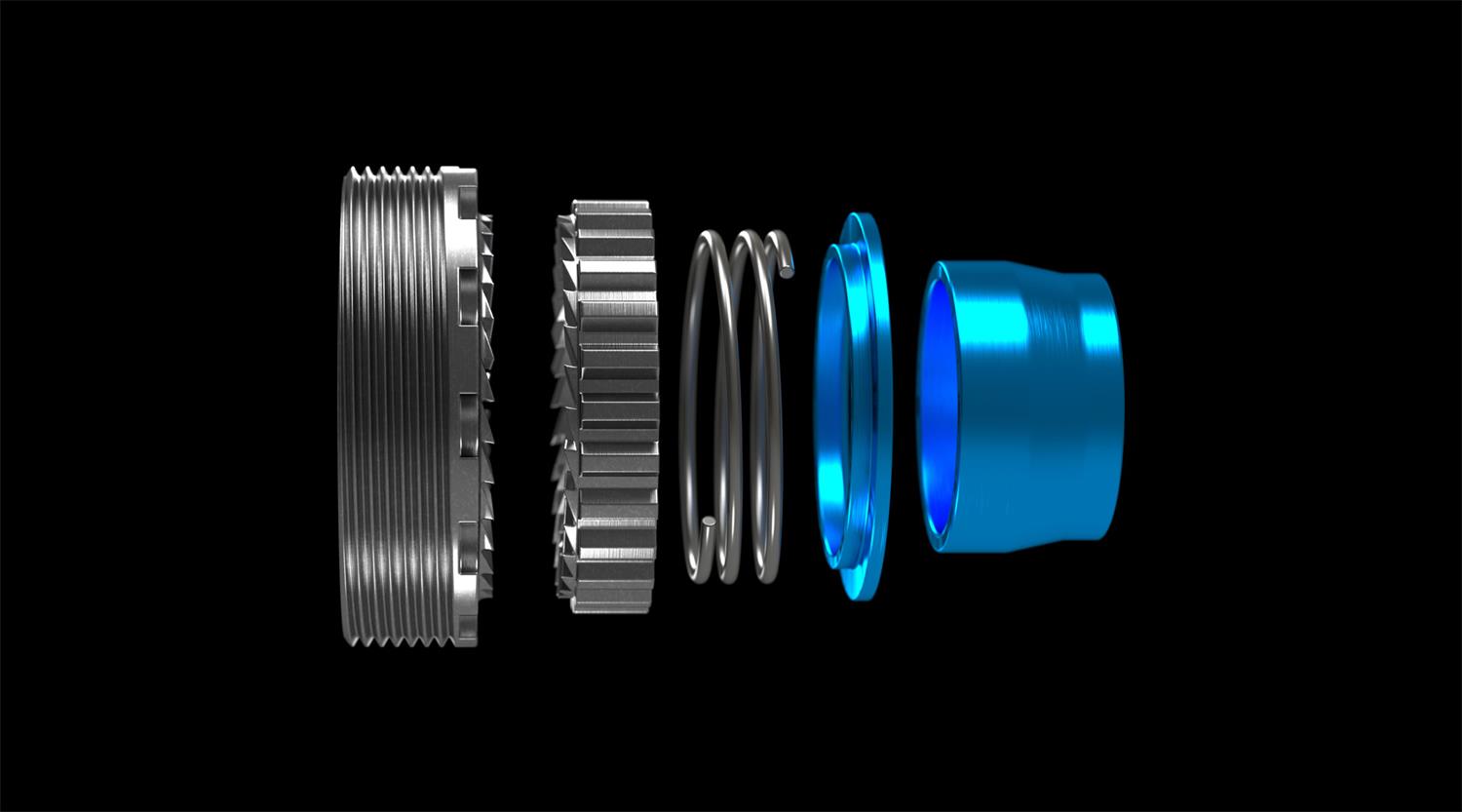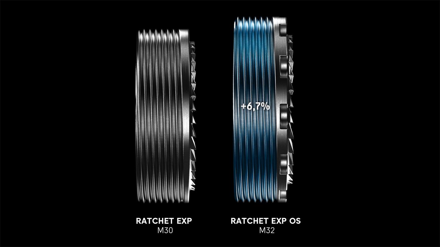 The latest 240 Hybrid hub incorporates special components like the Ratchet EXP OS system with 30 teeth to ensure reliable power transmission from both the rider and the motor to the ground. The drive side bearing is bigger and the hub flange is enlarged. The spoke holes are expanded, purpose-built for 2.34 mm DT Swiss spokes, which deliver enhanced resistance to acceleration and braking torques. Crafted from hardened steel, the freehub system further reinforces the hub's resilience, allowing for extended and trouble-free eMTB rides.