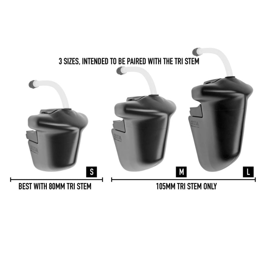 The Aeroflow is available in 3 sizes, intended to be paired with the Tri Stem. The small bottle works best with the 80mm Tri Stem, but can be used with the 105mm. The medium and large bottles only work with the 105mm Tri Stem. In all cases an equivalent 1/Seventeen stem with HSF faceplate can also be used.