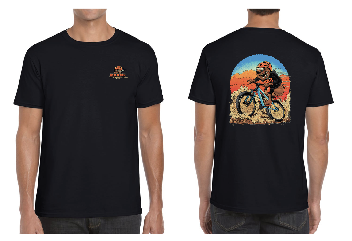 High quality, 100% cotton 'as colour' tee in black with Maxxis Mad Bear image on front and rear.
