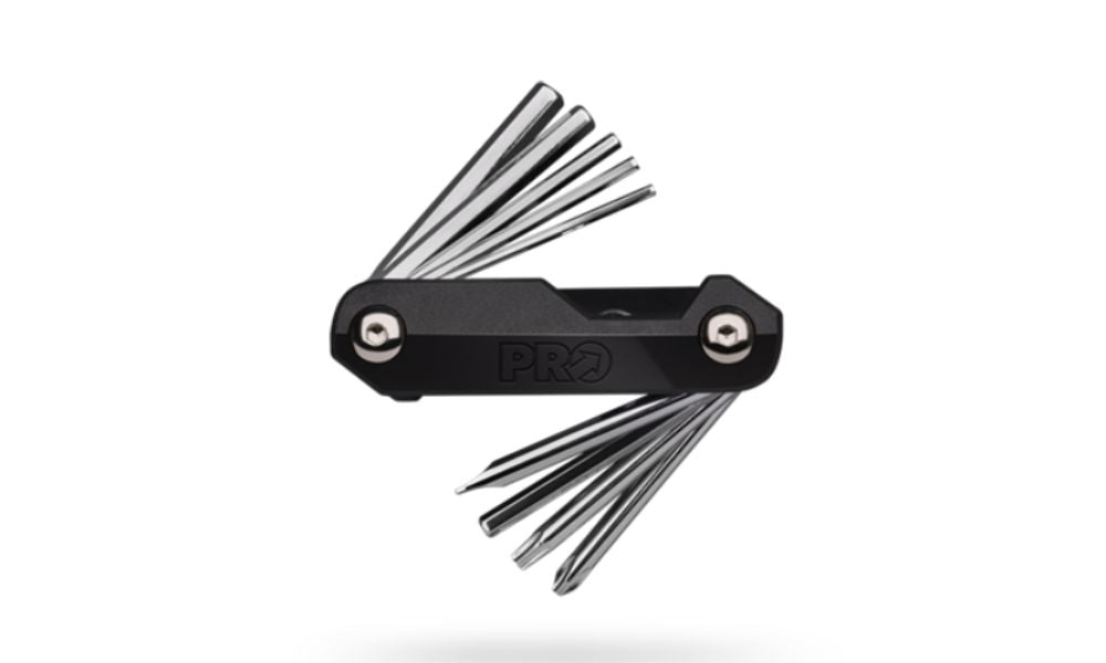 Designed to provide you with a better sports’ bicycle experience the PRO Mini Tool 10 Functions boasts 10 functions housed in a compact resin body. The hardened steel bits included in the tool are: Hex 2/2.5/3/4/5/6/8, Torque 25; as well as a PH2 and a Flat screwdriver.