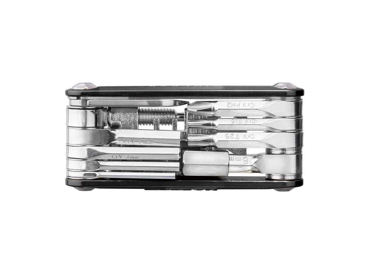 20 function pro-quality, precision mini tool with sleek forged alloy body. Integrated chain tool with built-in master link tool for removing master link type chains folds away for a streamlined profile. Compact forged alloy body. Perfect for any road or trailside repair.