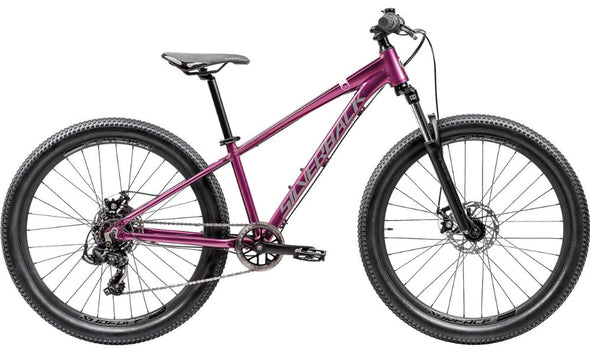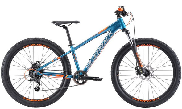 Bringing top-end features to the kid's bikes at the right price. A Sunrace 8 speed drivetrain, integrated kickstand mount, tapered headset, and progressive trail geometry is unseen in this class making Spyke 26 a true BIC offering. Featuring adapted POP geometry as piloted on the Slade, the Spyke 26 is a confident descender that handles like a proper trail bike. Silverback Juvenile brake levers on Promax cable disc brake calipers makes for great all weather braking. Spyke 26 will get your youngster shredding trails in no time.