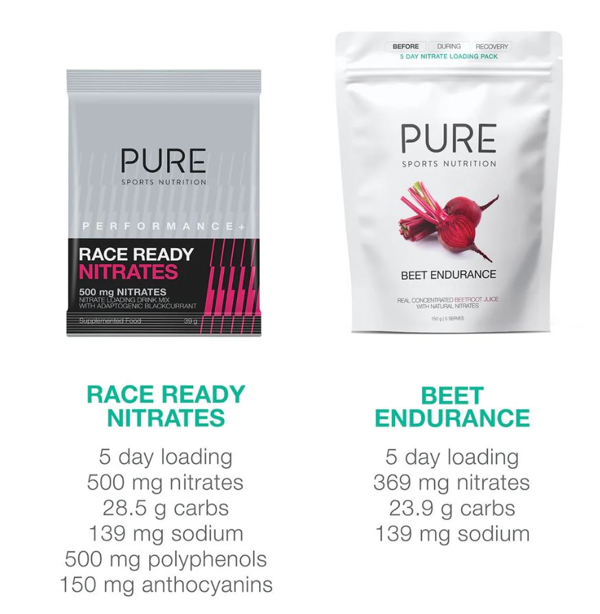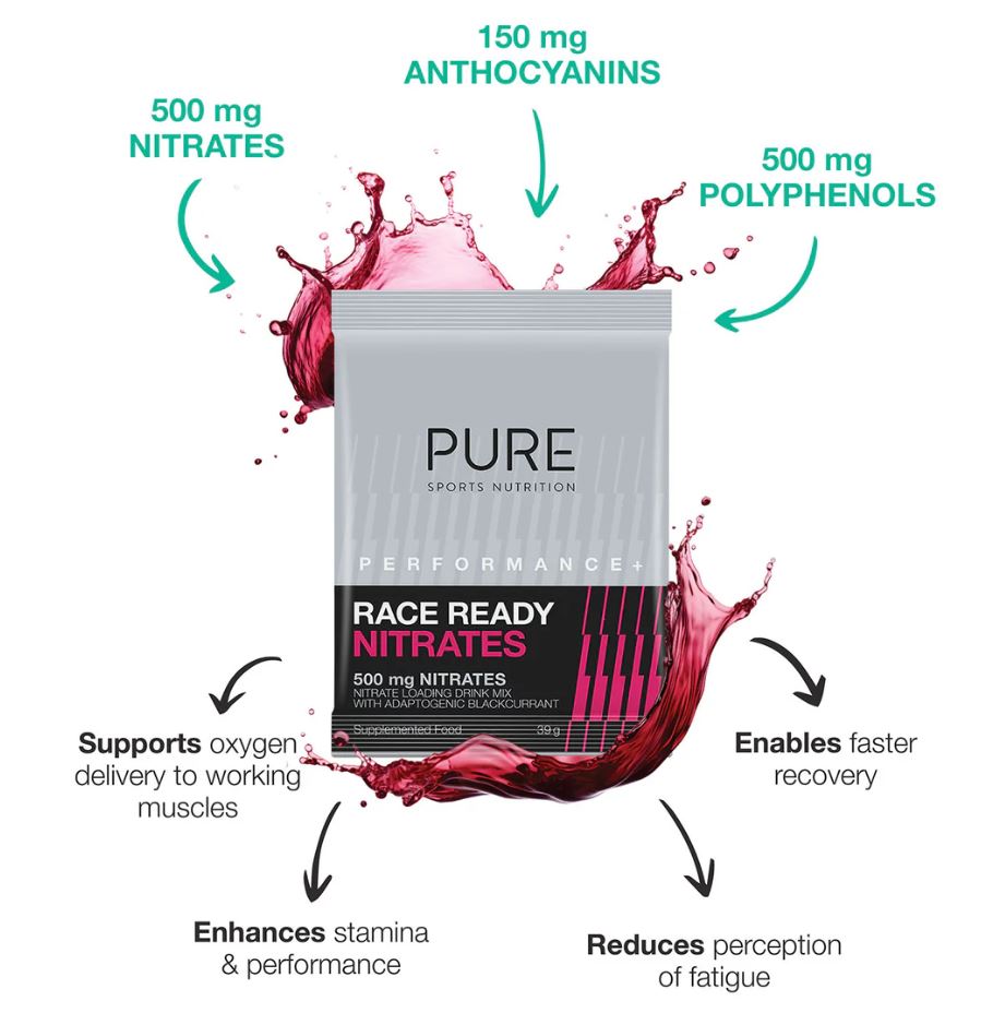 Race Ready Nitrates is a cutting-edge nitrate-loading drink mix tailored for endurance athletes. Designed for use 5 days leading up to an event, it capitalises on the cumulative effects of dietary nitrates to enhance oxygen efficiency, blood flow, and athletic stamina.