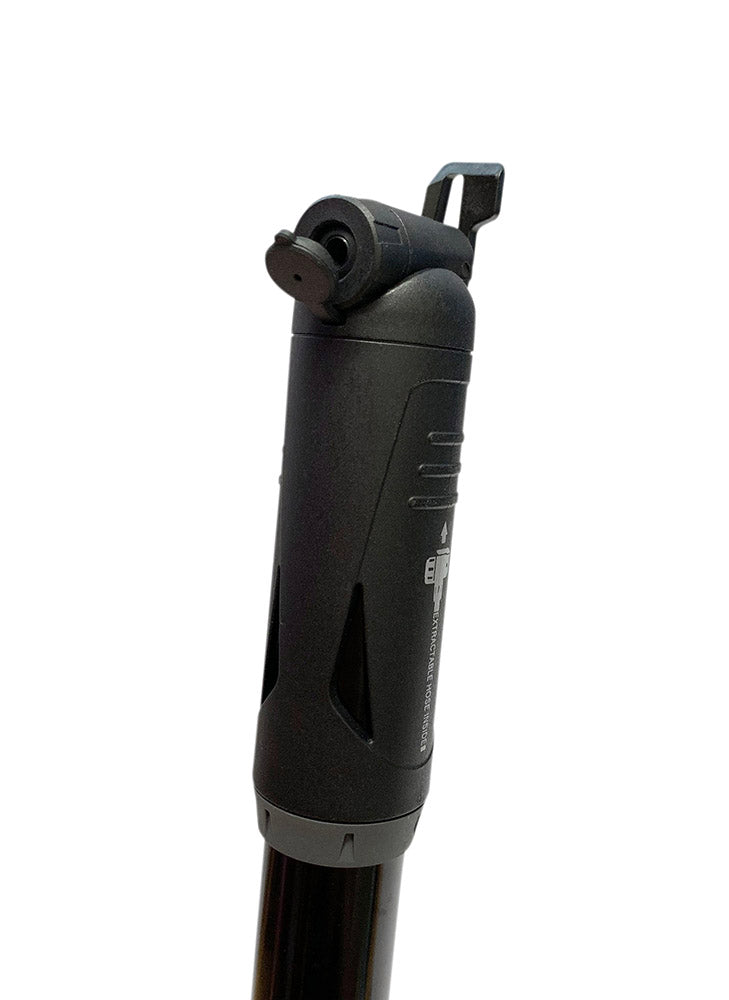 • Extractable Hose with reversible Presta and Schrader head and Thumb-Lock lever