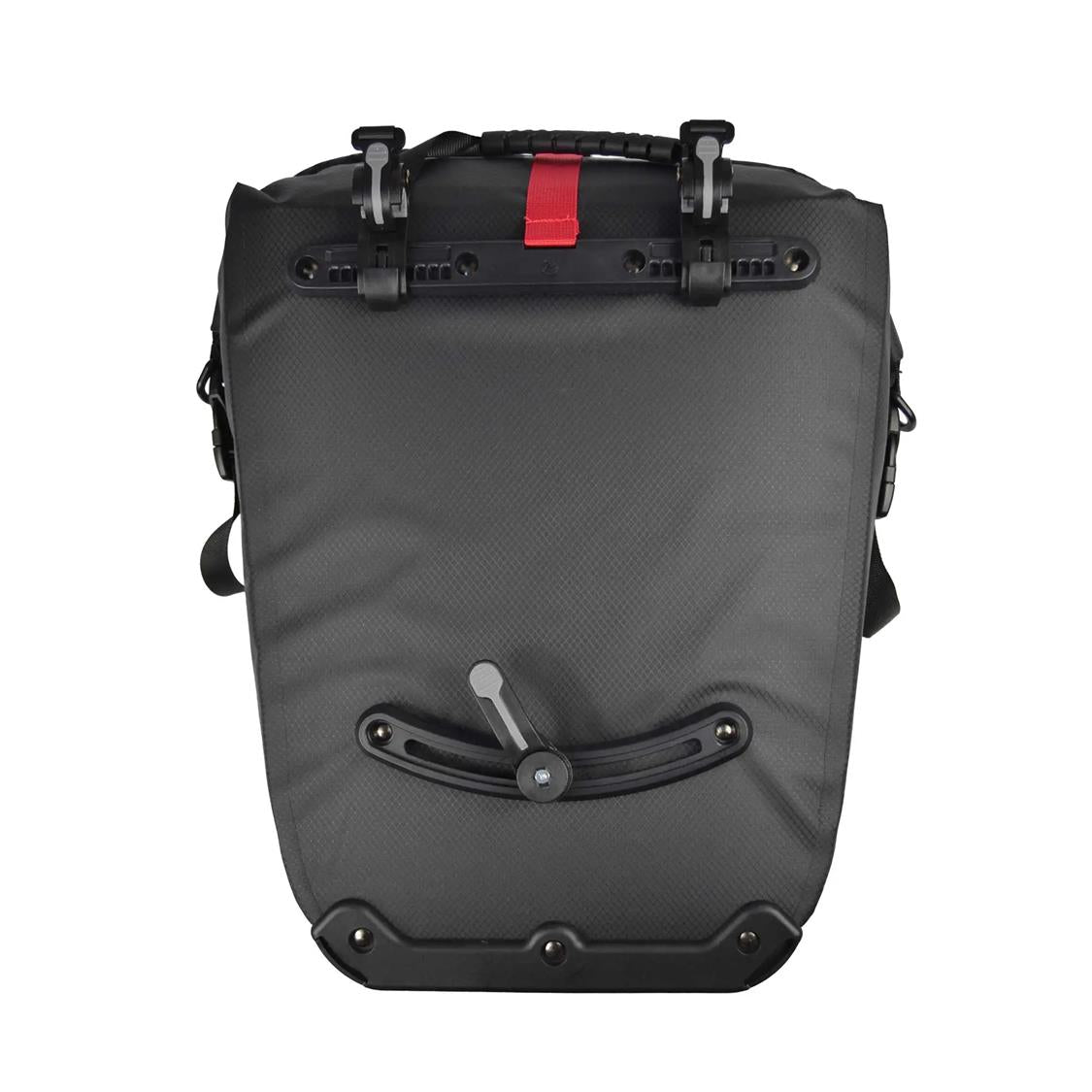 Made from durable 420D TPU Nylon with high frequency sealed seams, these 100% waterproof panniers are packed with features that make your rides more efficient. The bags feature a roll closure with safety straps on the top and a removable, padded, inner compartment made of Ripstop Nylon, which is coated with Nylon 210D for complete watertightness. They also feature a one-hand-quick-release system and a lower attachment that can be adjusted without tools (two lower hooks on the Little Pannier for precise positioning, one hook on the Big Pannier ).