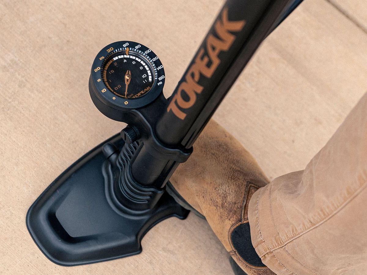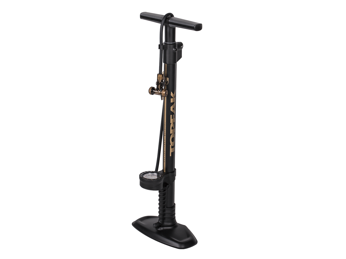 The JoeBlow Tubi 2Stage makes installing tubeless tires quick and easy. The innovative TubiHead® removes the Presta valve core – delivering massive air flow – to rapidly seat and inflate tubeless tires with no pressure loss or messy sealant leaks! The 2Stage pump design delivers high pressure or high volume with a flip of the switch to quickly fill any size tire. Stage 1 opens both barrels for huge air volume, reaching 30 psi with 30% less effort. Stage 2 utilizes the small barrel for high pressure up to 160psi. The accurate dual scale gauge delivers precise readings from low pressure MTB and Fat Bike tires to high pressure Road bike tires – all from the same pump. Extra-long hose for added reach and durable steel barrel and large stable base makes this the perfect floor pump for all bikes.