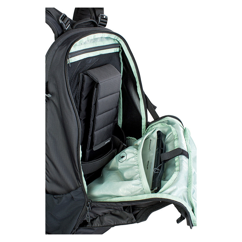 A protector backpack specially designed to meet the needs of the growing e-mountain biking community. Evoc have dedicated their experience in sophisticated backpack design - with a focus on protection, ergonomics, ventilation, organisation, carrying systems and quality - to the development of a special backpack for electrically assisted mountain biking.