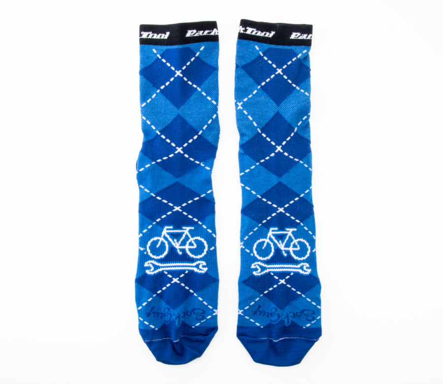 Cool Comfort Formula athletic socks custom-made for Park Tool by SockGuy®. Attractive argyle pattern with a Park Tool logo on the cuff and "Trust Me" / "I'm a Bike Mechanic" emblazoned across the arches. Featuring a double-stitched heel & toe and a cool mesh upper.
