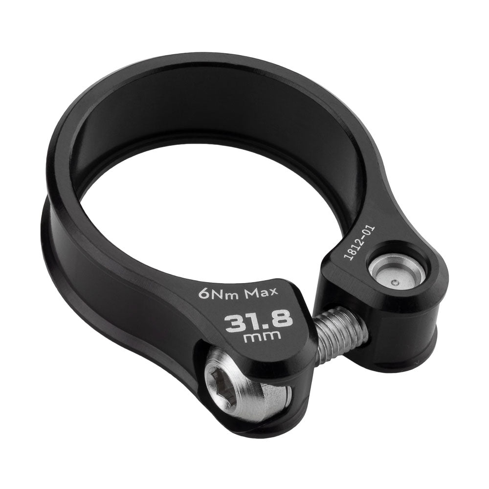The precision-engineered Wolf Tooth Seatpost Clamp secures your seatpost and looks good doing it. At the heart of this seatpost collar are our custom self-aligning bolt and anchor. The M5 bolt includes spherical washer and mates with a cylindrical anchor barrel. This means that threads are always perfectly aligned, preventing binding and ensuring consistent clamping force.