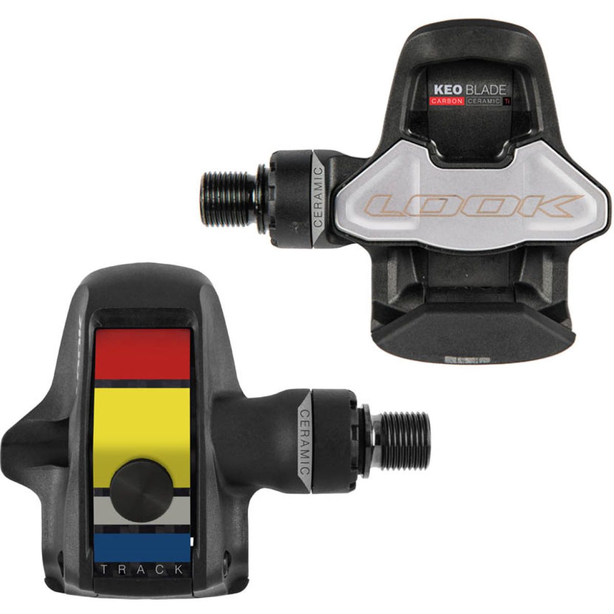 Every watt of power you crank into the Look KEO Blade Carbon Ceramic Track Pedals is converted directly into speed. With a 700mm² contact area, the rider’s foot becomes one with the pedal to crank tons of power through the drivetrain. This type of world class power along with their lightweight gives them the best power to weight ratio on the market. Ceramic bearings are featured in this version of the KEO Blade, all meticulously calibrated, down to the micro-meter. Ceramic bearings are less susceptible to dust and corrosion, giving them a lifespan about four to six times longer than steel bearings. They also reduce friction by up to 18% so you can go faster for longer. The Look KEO Blade Carbon Ceramic Pedals are a world class addition to your favorite track bike.