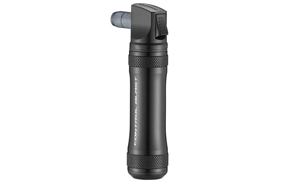 Get back on the road fast with the Control Blast Can. A sleek and tough aluminium casing for CO2 that prevents skin making contact with the cold canister and features a pressure button for fast, hassle free inflation and screw on head that fits both Presta & Schrader valves. Fits the 16g cartridge.