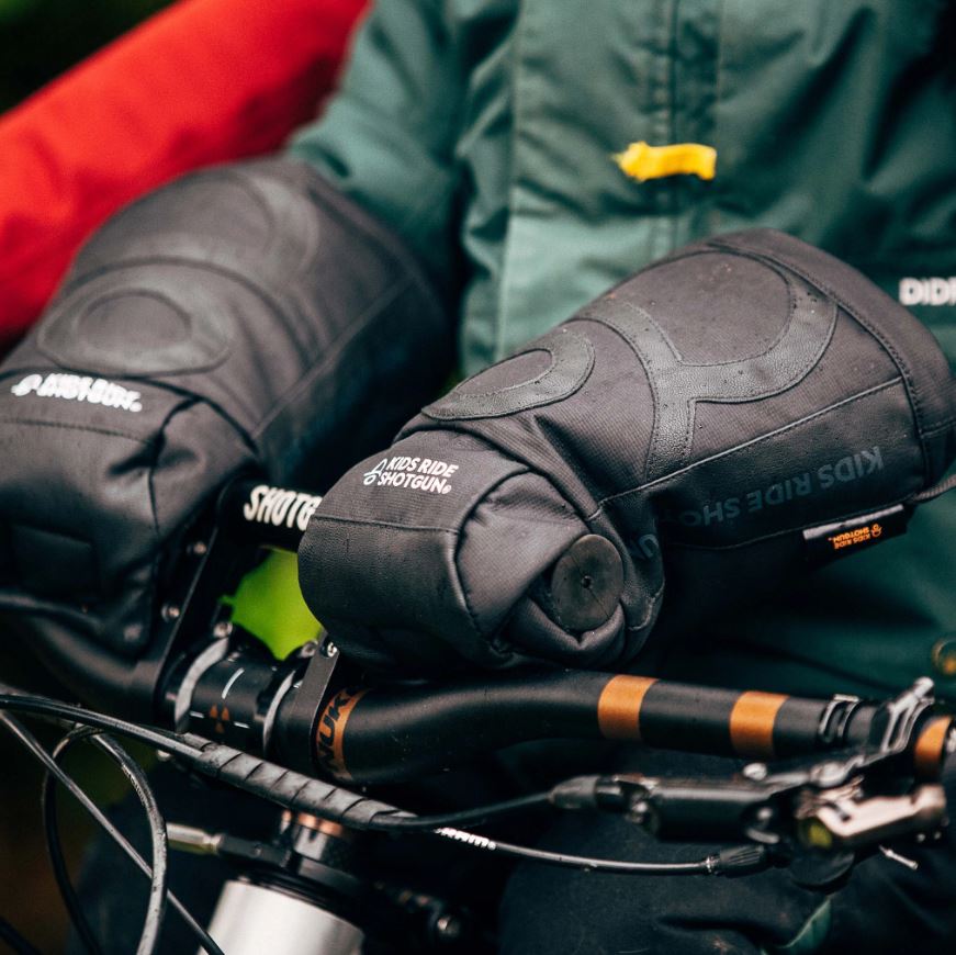 Keep little hands warm and extend your time on the trail. The Kids Ride Shotgun children's pogies are designed for use with all Shotgun seat and handlebar products, and are made for winter rides, cold mornings - or even snow!
