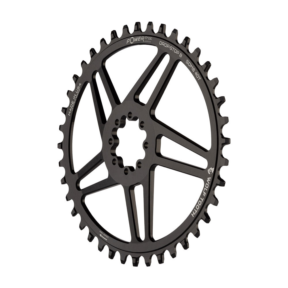 Wolf Tooth’s patented Drop-Stop® wide/narrow tooth profile delivers ultimate chain retention and mud shedding ability. See below for Drop-Stop B compatibility.