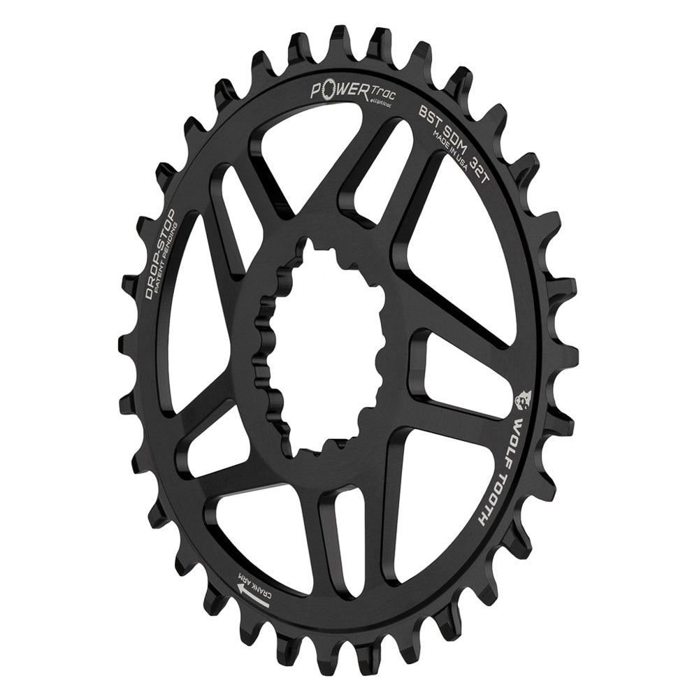 Wolf Tooth’s patented Drop-Stop® wide/narrow tooth profile delivers ultimate chain retention and mud shedding ability.