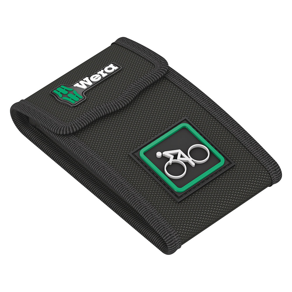 Bicycle repair shops and passionate cyclists love screwdriving on a bicycle. With their Bicycle Set 1, the screwdriving tool specialist Wera offers an assortment of tools that is very mobile thanks to its compact and design-oriented textile folding bag, and offers solutions for the most common screwdriving situations when working with bicycles. The sturdy bag contains the bit ratchet Zyklop Mini 1 and 10 bits with all the benefits of Wera-Bit technology, specially adapted to the most common screw connections on a bicycle. With the glass fibre reinforced plastic tyre levers, the tyres can be safely levered off the rim without damaging the rim.