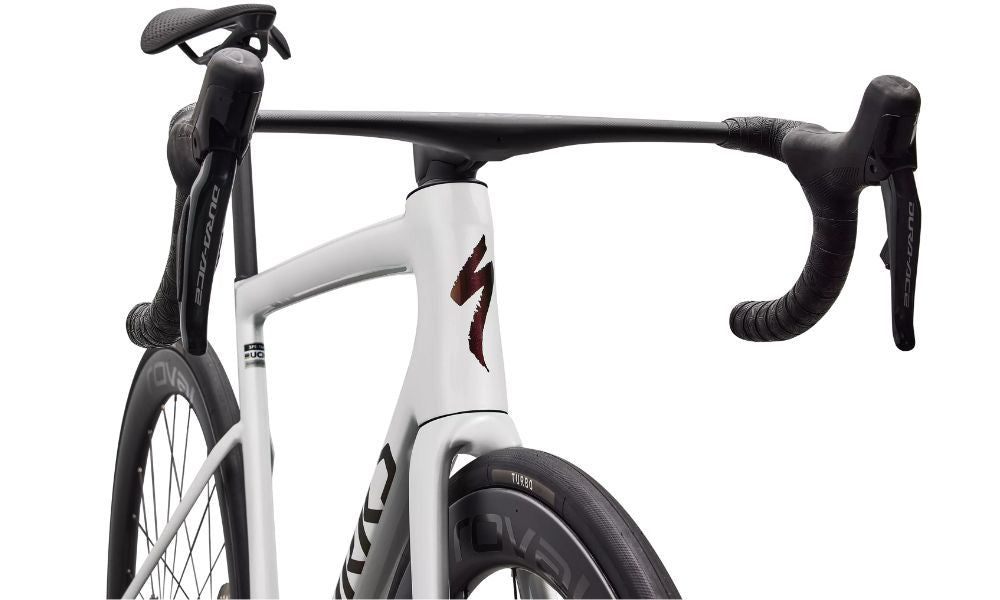• S-Works Tarmac SL8 is spec’d with only the best components. A full Shimano Dura-Ace 9200 series Di2 groupset with dual-sided power meter, and a Roval Rapide CLX III tubeless-ready wheelset is the perfect complement to the world’s fastest frame. All S-Works Tarmac SL8 models ship with a Roval Rapide cockpit to save weight and for the fastest possible leading edge.