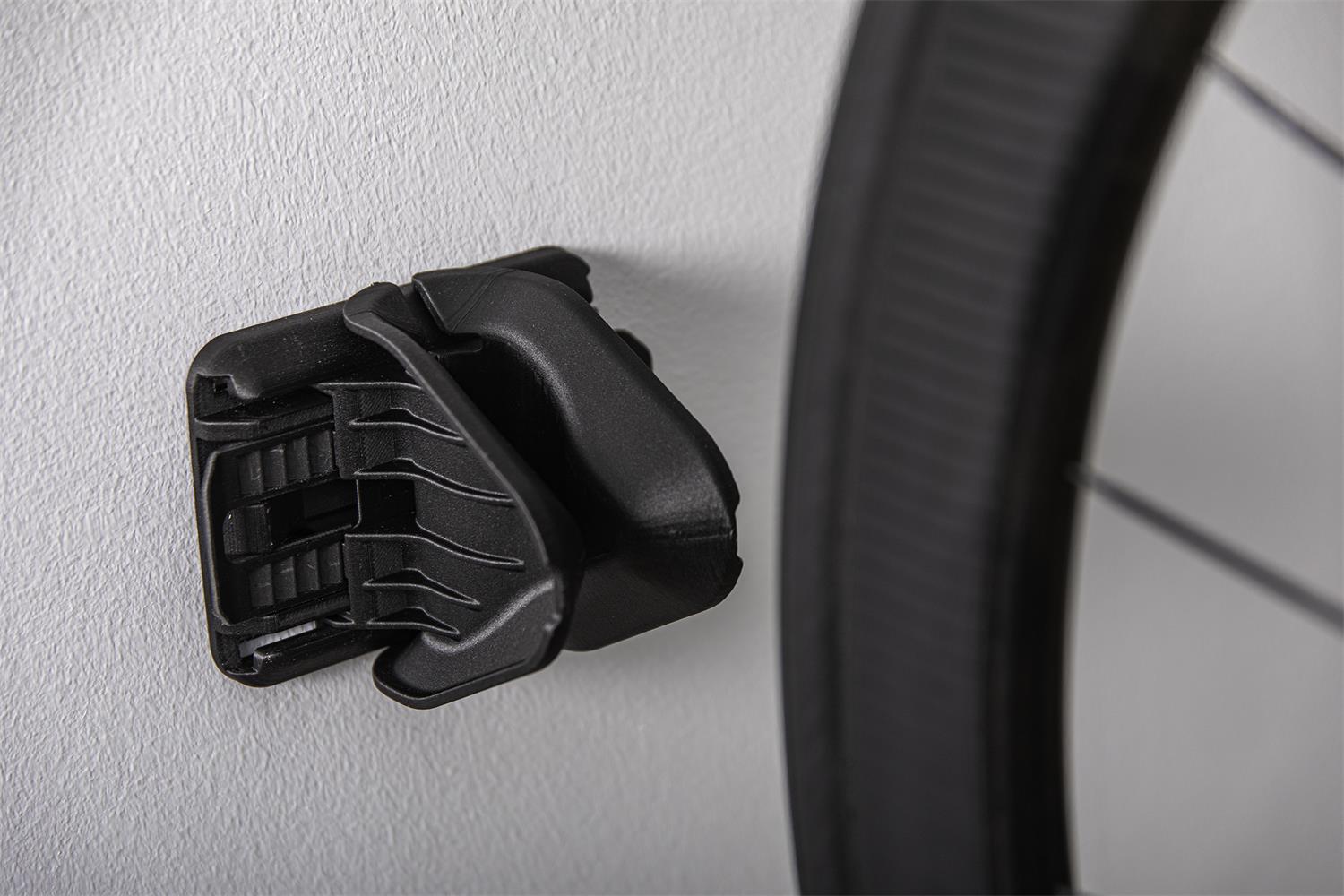 Compact wall mounted bike rack for storing bicycles. Holds bike in horizontal or vertical position. Unique fully adjustable design fits all popular bicycle types and sizes and is a “one size fits all” efficient bicycle storage solution. JAW is easy to fit (fixings included) and be installed at different heights to suit bike types and storage requirements.  If you require basic security, JAW is designed to be used with Z LOK.