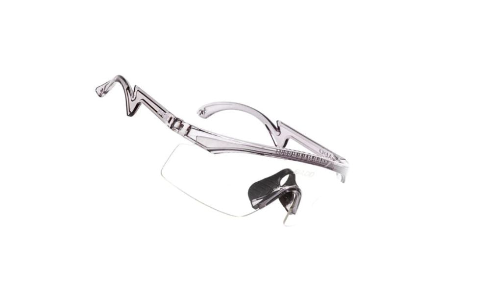 • Custom designed rubber nose bridge, insuring that your glasses will always stay in the correction position on your face, no matter what position your body may be, vertical or horizontal.