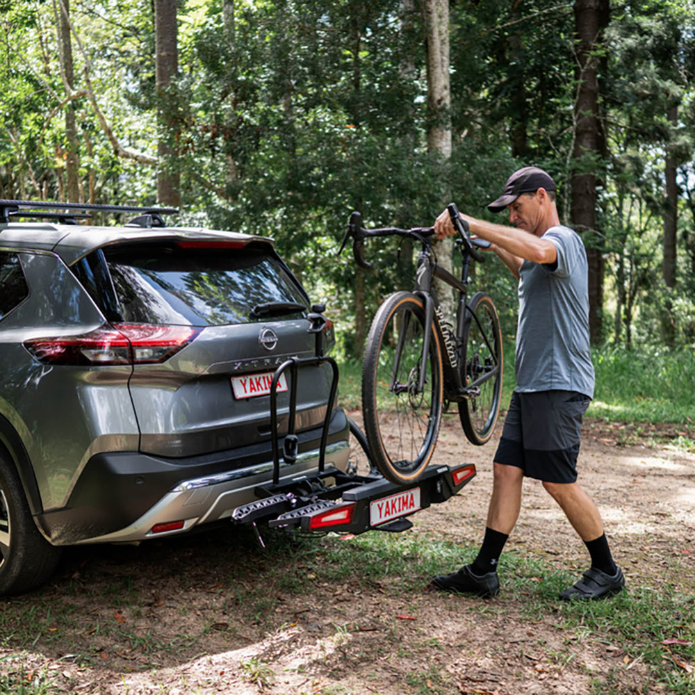 Carry two bikes with your FoldClick EVO tow ball carrier. The simple “Just Click” system makes it easy and secure to mount to your vehicle’s tow ball. It's trump card is the ability to fold down to occupy a very small space, so that you can just leave it in your boot for when you need it.