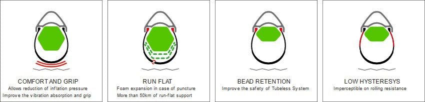 Air-Liner Road adds to rider safety by providing positive tyre/rim lock in the event of total air loss. Keeping your tyre in place on the rim.