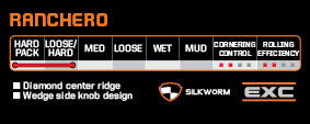 The Ranchero's large volume and tightly spaced centre knobs make this tire ideal for hardtail racing. The shoulder lugs hook up well in turns, but stay out of the way in the straights to lower rolling resistance.