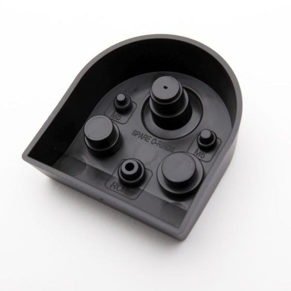 - Base for funnel and adapters with spare O-ring studs at the bottom
