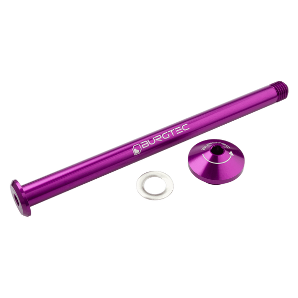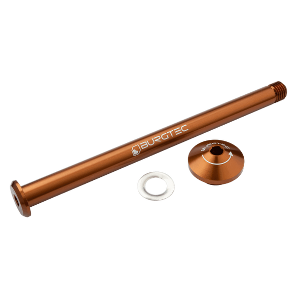 Clean and Simple is always best. Leverless design for added security and clearance for when situations get tight. These super tough axles tighten up with a 6mm Allen key. Dropout Bolt is also provided.