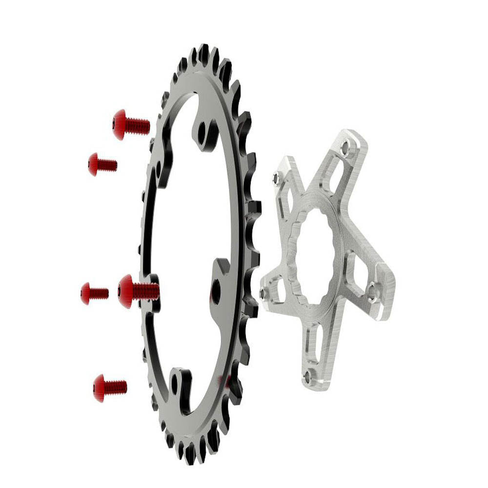 - Spend less for chainring swapping by buying only the chainring, compared to chainrings that have an integrated spider