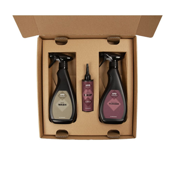 The UFO Essentials Bundle contains the cornerstone offerings from the UFO product range. Suitable for most riders’ needs and tailored to keep your drivetrain optimized and protected in mixed riding conditions. Show your bike how much you care!
