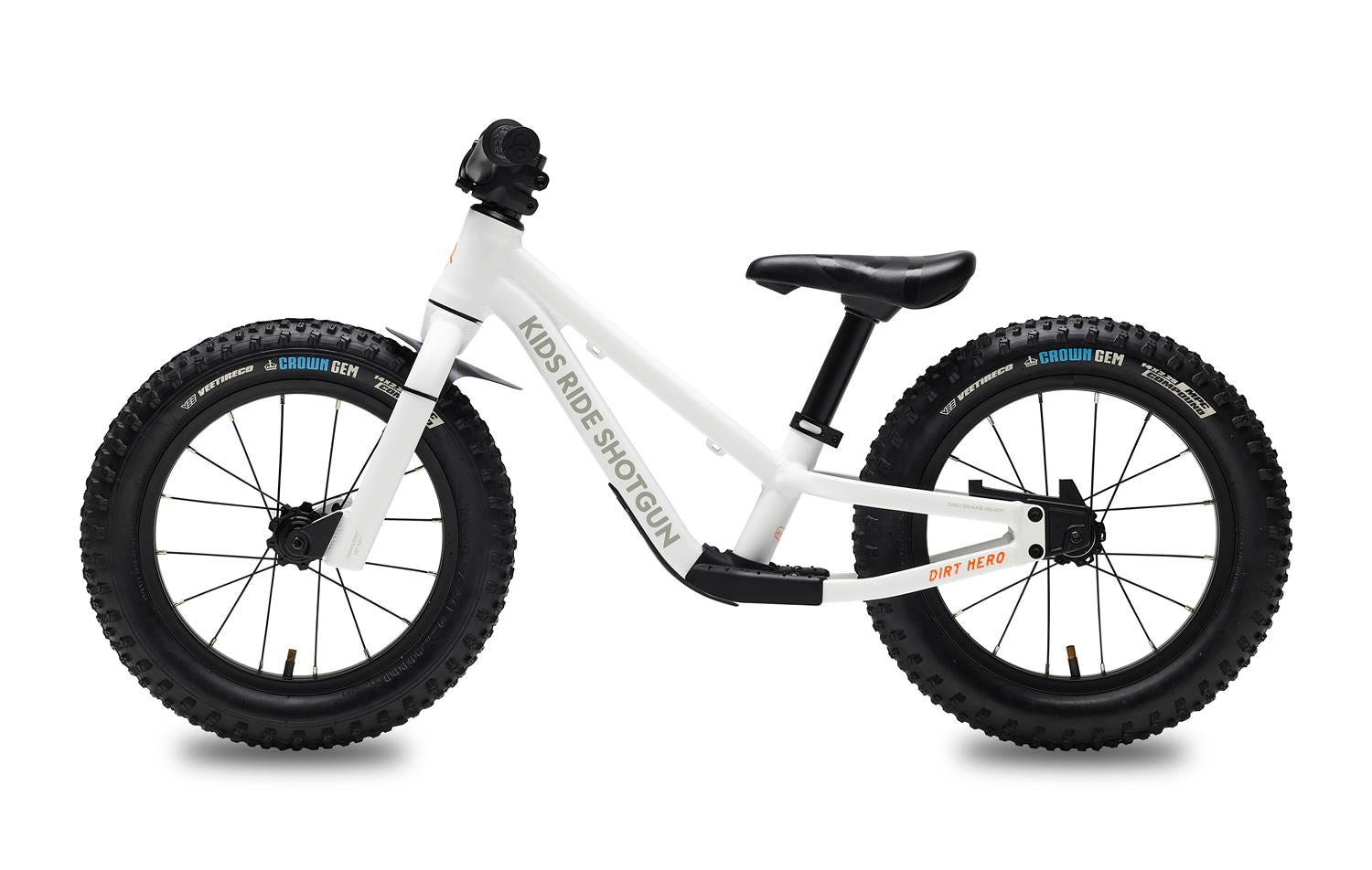 The Dirt Hero takes 12” and 14” wheels sizes, or can be set up as a mullet. From our research we often saw kids making the leap straight from a 12” balance bike to a 16” pedal bike. Such a big step can not only hinder their progression but also impact their enjoyment of riding. Being able to move smoothly from a 12” to a 14” (and then adding brakes), all before having to take on a much heavier pedal bike keeps kids progressing one step at a time and the stoke levels high. For customers, not having to buy a seperate 14” bike is a huge value proposition, they can simply upgrade their wheel kit and keep the good times rolling.