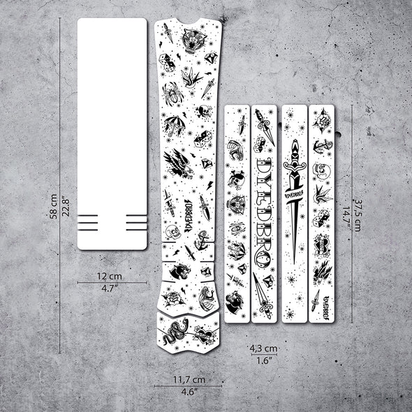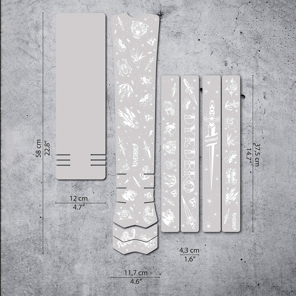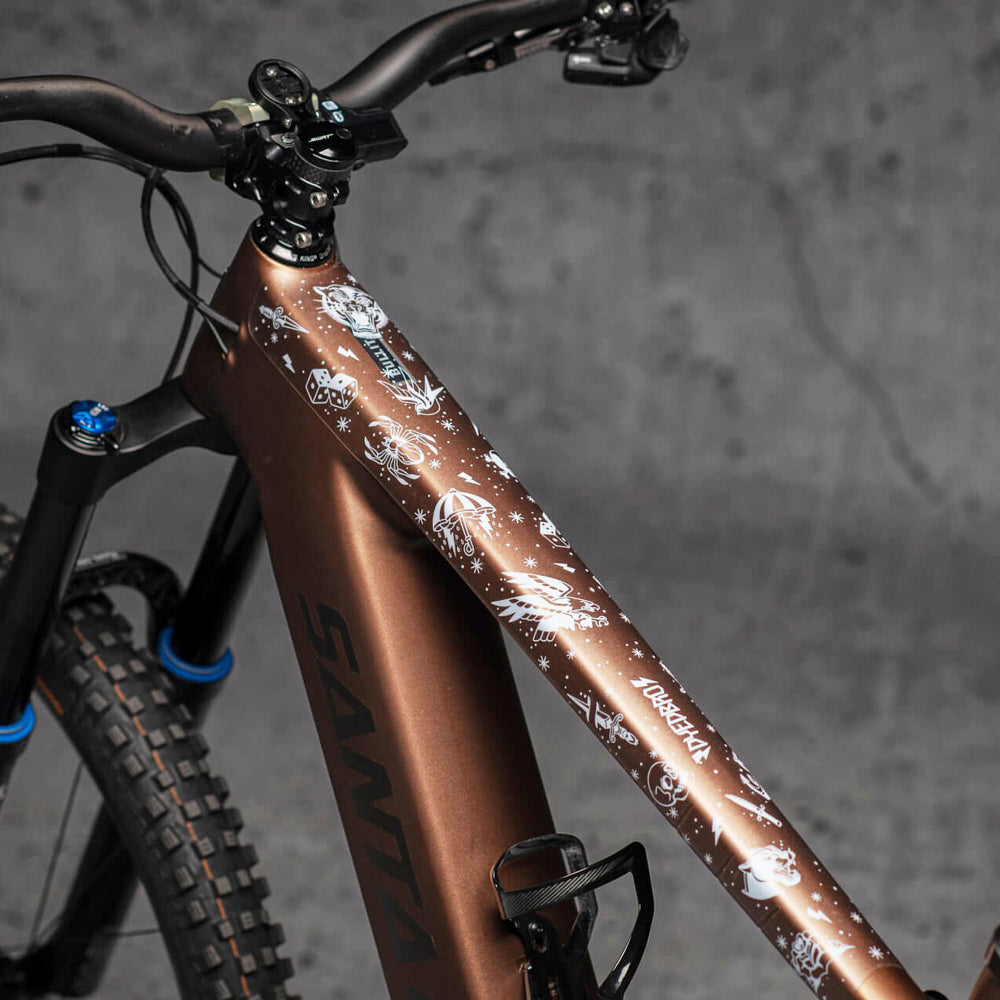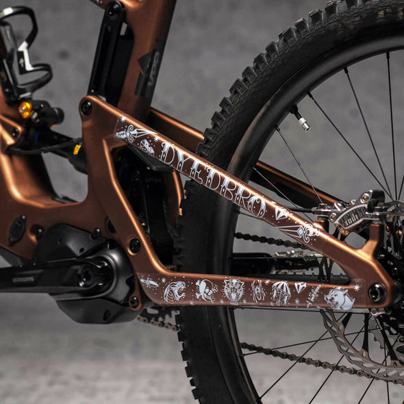 This kit features wider decals to ensure better coverage on e-bike frames. E-bikes are super fun and tend to get ridden further, faster and more frequently than their analogue cousins, making staying on top of wear and tear all the more important. A DYEDBRO e-bike kit keeps your frame looking in tip-top shape, protecting its value and letting you focus on enjoying the ride!