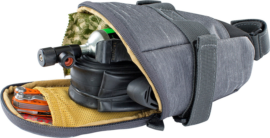 The Seat Bag Tour from Evoc is a practical water repellent repair kit case which stays on the bike, ensuring hassle-free riding.