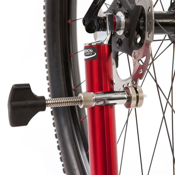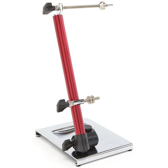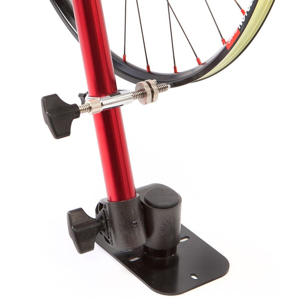 Have you ever wondered why all Feedback Sports bike repair stands have exposed frame above the clamp head? Our Pro Truing Stand is designed to sit atop all of our portable stands! The truing stand also includes a free-standing steel base and a bench-mount adapter for when you’re not traveling to races and top-secret trailheads. This single-arm, precision wheel and rotor truing stand is awesome at home and excels at races, events, or adventure-riding weekends. And with the all-new Thru-Axle Adapter, it can accommodate the most common wheel sizes for quick-release or thru-axle hub designs. Use the benchtop mount for an awesome tubeless setup and tubular gluing station.