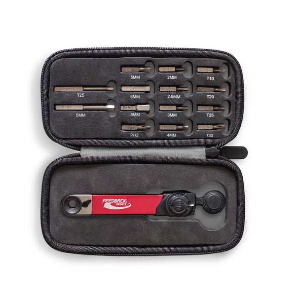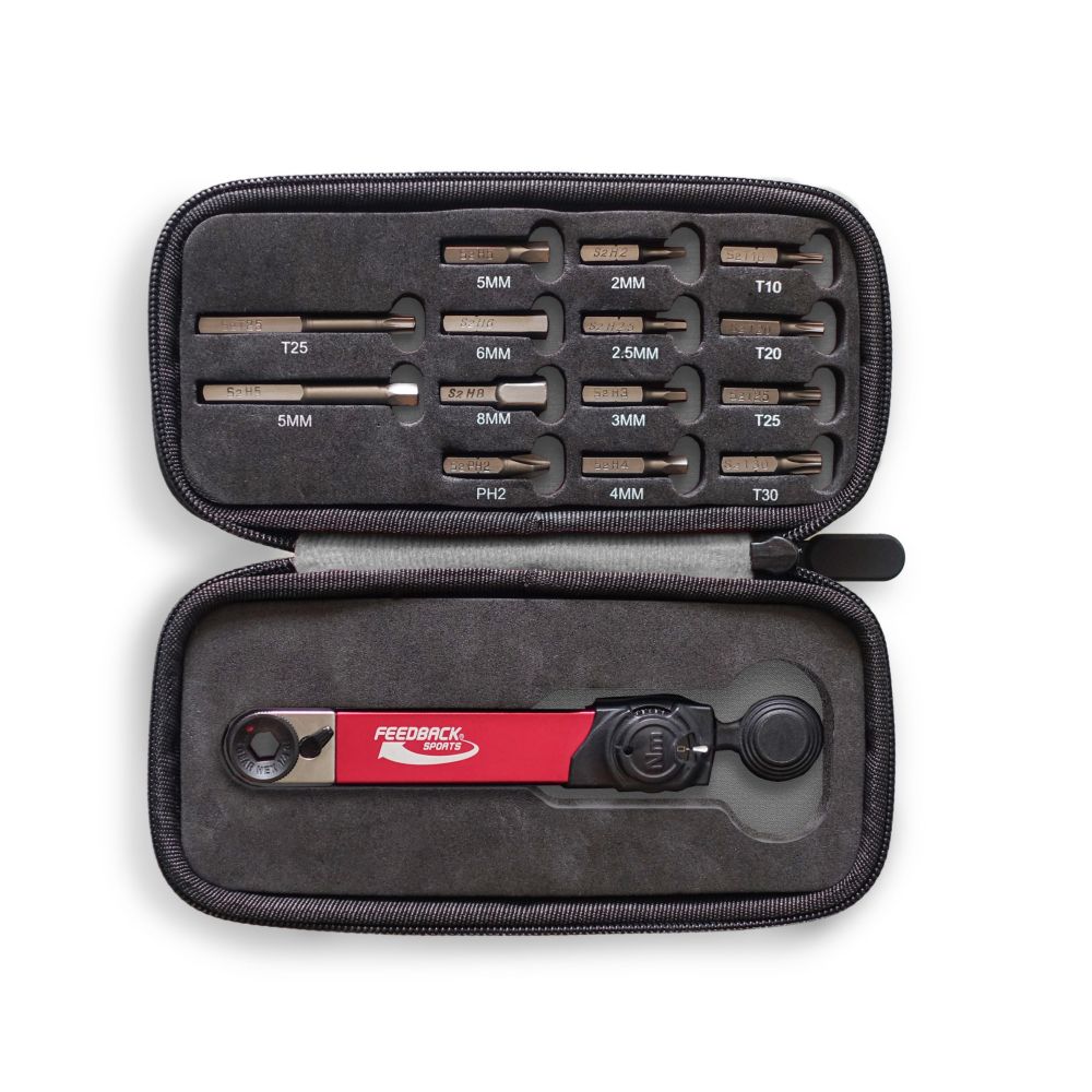 The all-new Range Torque Wrench + Ratchet Wrench Combo simplifies proper bike maintenance by combining the precision of a bar-style torque wrench and speed of 2-way ratchet wrench in a compact, lightweight and portable package. There’s no need to set a specific indexed torque, or go searching for missing bits – select your bit from the case’s labeled inserts, ratchet for quick thread engagement and use the torque head to match manufacturer specifications for torque.