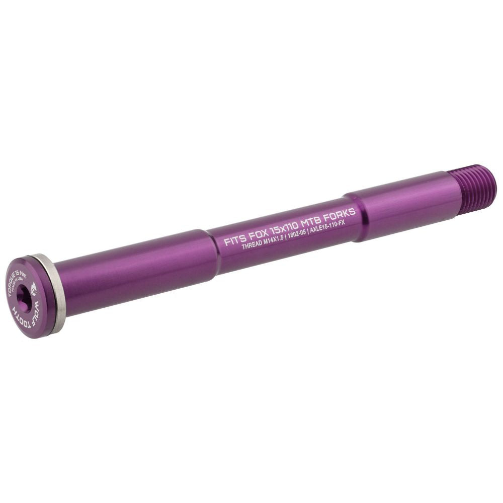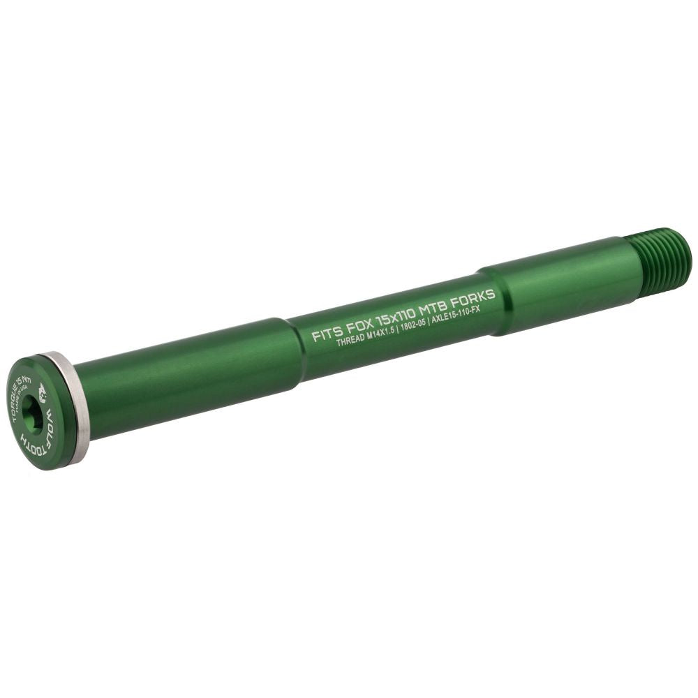 Wolf Tooth Front Axles are lightweight, easy to use, and friendly with your fork. They are available in a variety of colors and lengths for Standard, Boost, and Fat Bike forks. They use a captive steel washer under the head that protects your fork, transfers more of the tightening torque to clamping load for a stiffer interface, and prevents the axle from sticking or galling when you want to remove it.