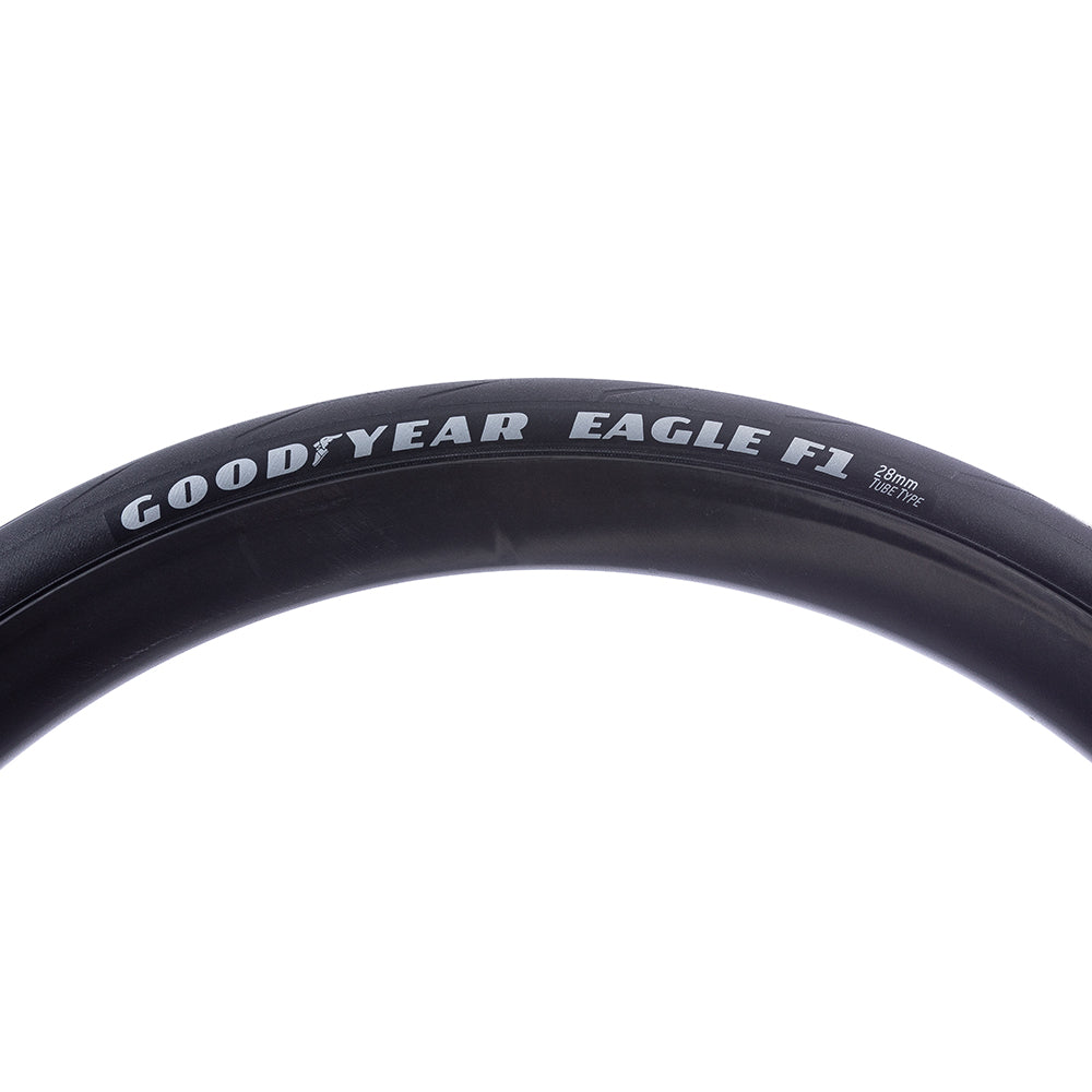 Both of these F1 models use a supple 120tpi casing and Goodyear's R:Shield puncture protection cap. On this Eagle F1 the cap is a little wider, and the rubber on top of it is just a hair thicker but maintains the mild texturing making it a light, ultra-high performance, all-round road race tyre.