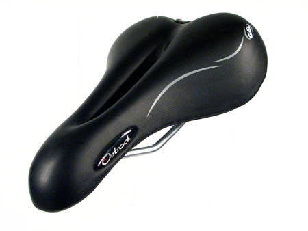 Comfortable mens saddle featuring gel foam encapsulated between a D2 base and soft, vacuum moulded upper. The design consists of a full cut base which excludes the main pressure point in the saddle creating an even more comfortable ride.