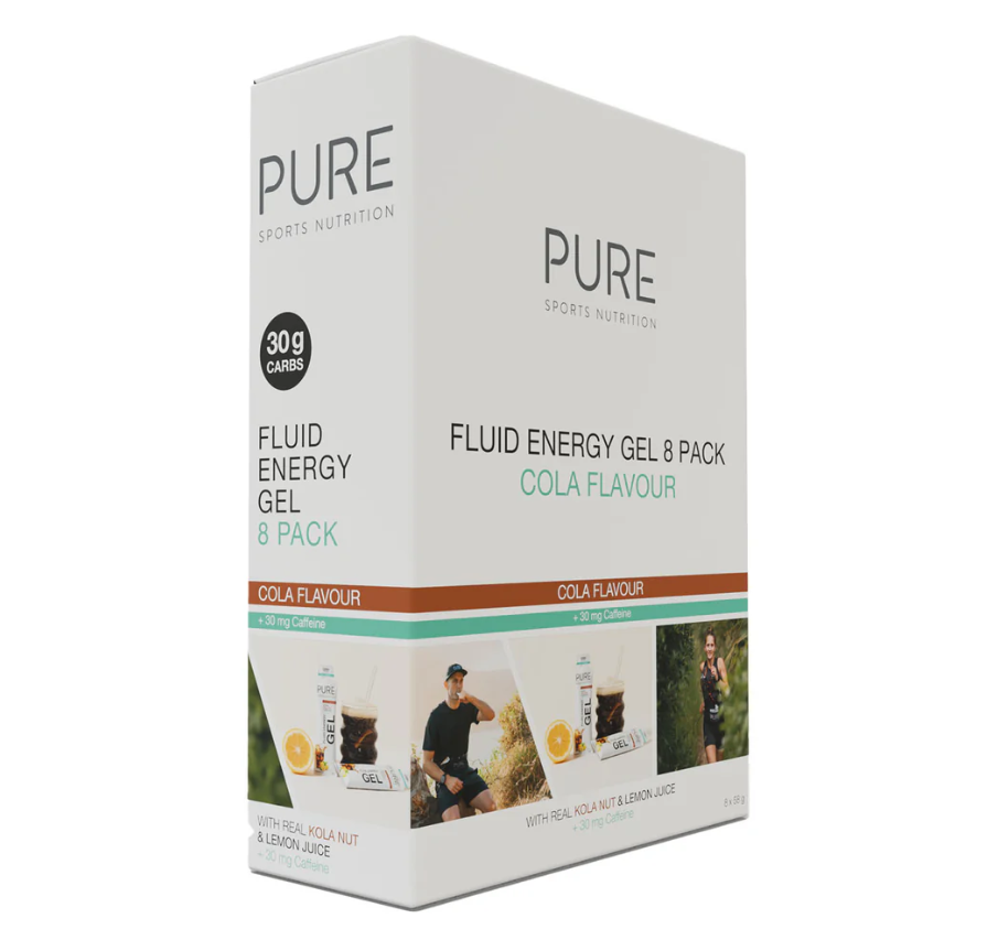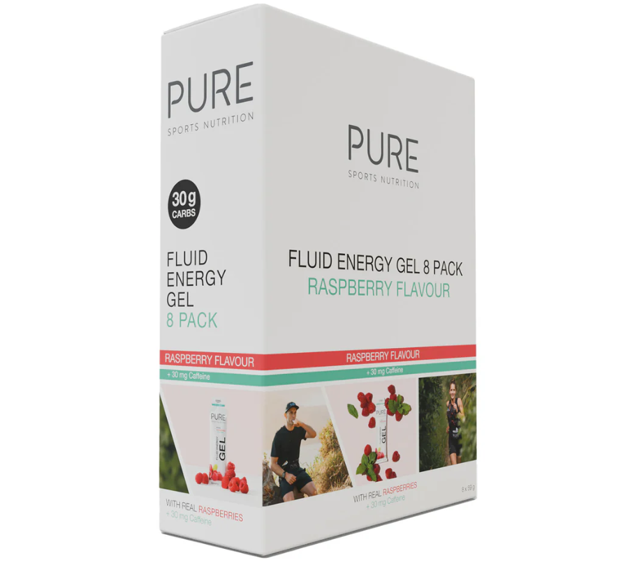 The new PURE Fluid Energy Gel sample pack contains 8 of our popular fluid energy gels, including some options with caffeine, in a premium presentation box and is a convenient way for customers to try a variety of flavours. Our all natural energy gels are designed to provide fast fuel during exercise in a no-fuss easy-to-use way. Fluid in consistency, these gut-friendly gels have around 24-26 g carbohydrates per serve, are not too sweet and flavoured with real fruit juices.