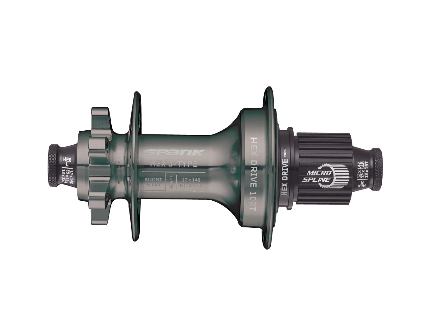 The Spank Hex Drive hub features 102T technology to deliver 3.5° engagement, for almost instant pickup. The 6 independent pawls with 3 steps per pawl work in unison, meaning 18 engagement points per click. Its Bite-Block Alloy HG and XD Freehub bodies resist damage from cassettes without the weight penalty of steel, while the unique flange design reduces the dish requirement and minimizes the tension range between drive side and non-drive side spokes. An advanced seal system improves prevention of bearing/drive system contamination.